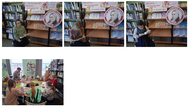 Дети собрались за круглым столом возле книжной выставки, украшенной портретом знаменитого писателя и иллюстрациями к его произведениям. Библиотекарь рассказала немного о жизни и творчестве великого баснописца, а затем дети по очереди выходили и начинали читать вслух знаменитые строки – “Ты все пела? Это дело, так поди же попляши.” Голос каждого ребенка звучал выразительно, подчеркивая юмор и мудрость крыловской прозы. По окончанию ребятам было предложено поучаствовать в викторине и вспомнить мораль каждой прочитанной басни.